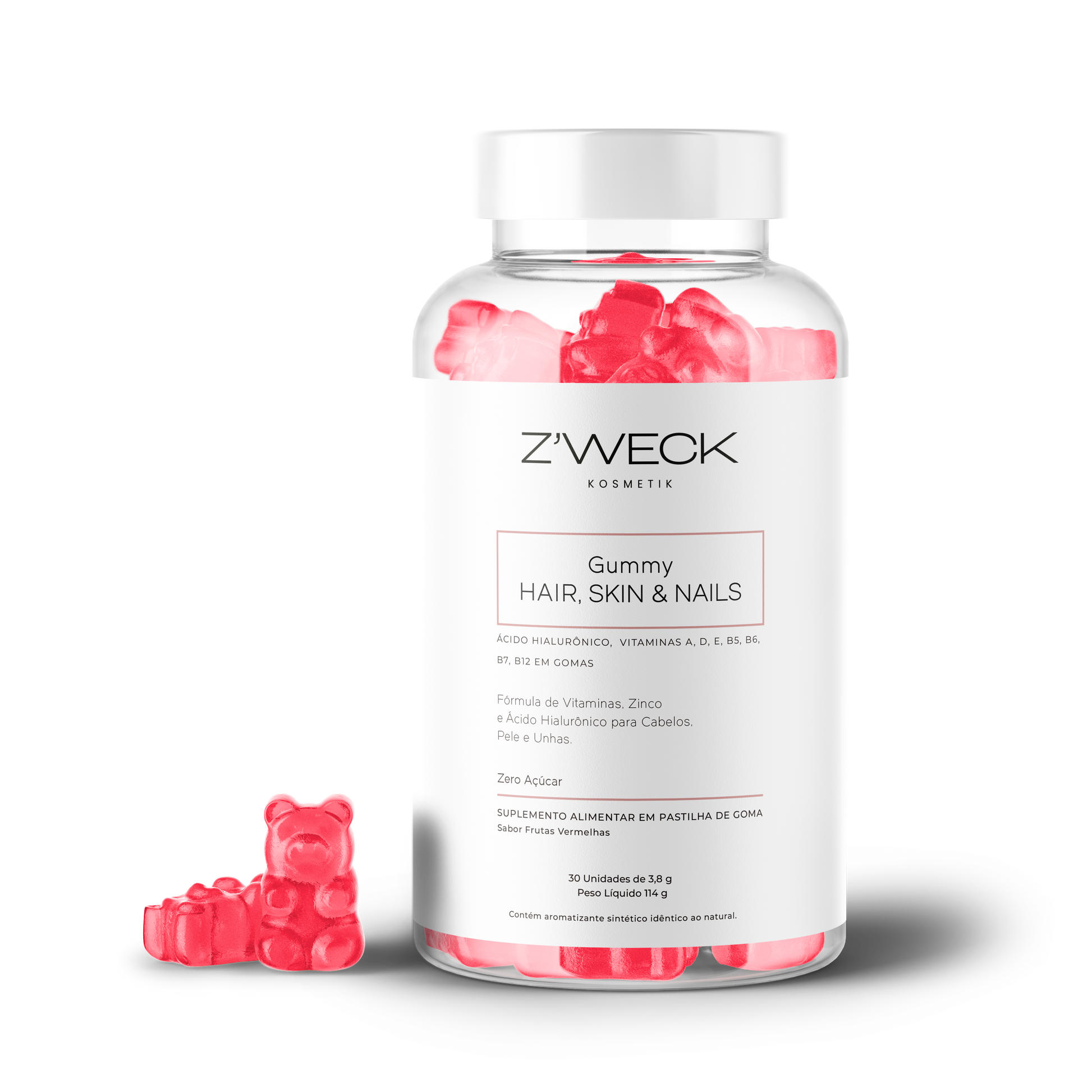 GUMMY HAIR, SKIN & NAILS GUMMY Z'WECK é um produto formulado com pectina vegana de alta qualidade. Este produto é livre de glúten, açúcares adicionados e aditivos artificiais, proporcionando uma experiência completa de cuidado nutricional. Cada componente da fórmula é cuidadosamente selecionado para garantir resultados visíveis e duradouros.